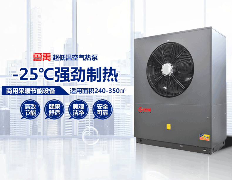魯禹家用空氣源熱泵供暖機組由壓縮機、冷凝器、膨脹閥、蒸發器等部件組成。在室外熱能轉移過程中,每消耗1份電能,就可以為室內提供4份的熱量(根據不同運行狀態,該值也會有所不同)。