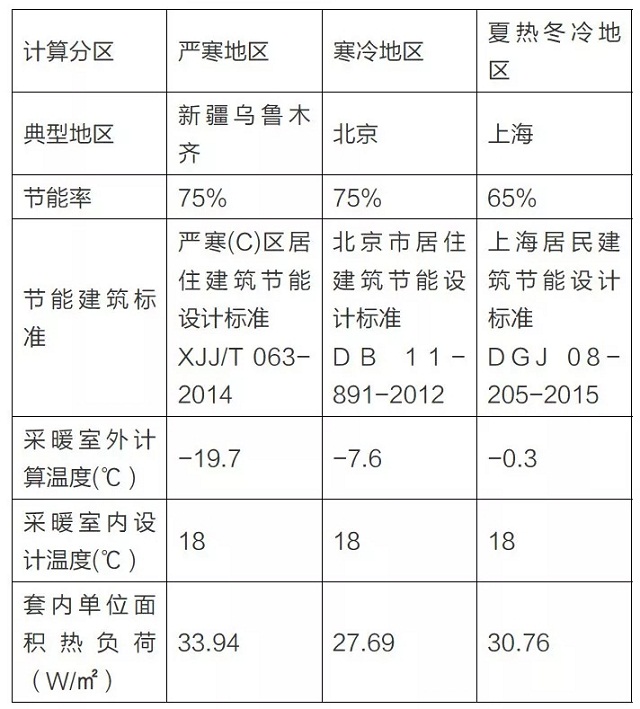 表1:典型地區(qū)節(jié)能建筑套內(nèi)單位面積熱負(fù)荷匯總表