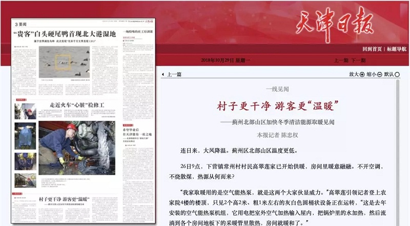 據(jù)天津新聞報(bào)道,使用了空氣源熱泵供暖之后,“村子更干凈、游客更溫暖”。農(nóng)家樂(lè)的老板也對(duì)空氣源熱泵的供暖效果贊不絕口。以下為報(bào)道部分內(nèi)容: