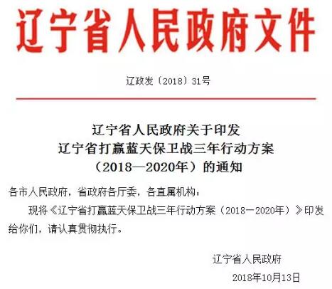 遼寧省打贏藍天保衛(wèi)戰(zhàn)三年行動方案(2018—2020年)