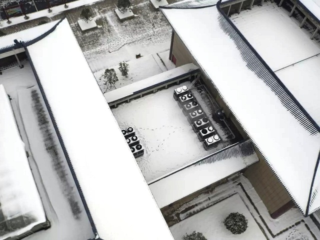新疆和田市于田二中8.5萬平超低溫空氣源熱泵機(jī)組采暖制冷工程照片