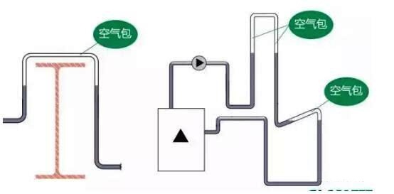 整個系統(tǒng)的主管道一定要平直,順水流方向略有上坡最好,也就是說進水管稍稍往上抬,回水管稍稍往下降,這樣可以方便管道中空氣的排放,而且主管道切不可走U型,會形成氣堵,及時用軟連接也不行。