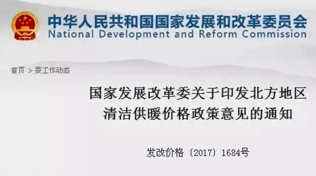 國家發展改革委《北方地區清潔供暖價格政策意見》