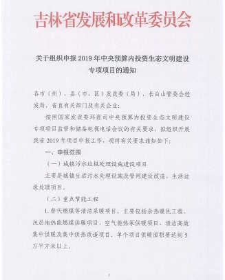 文件名稱:《關(guān)于組織申報2019年中央預(yù)算內(nèi)投資生態(tài)文明建設(shè)專項備選項目的通知》