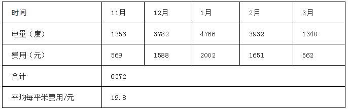 通過一個冬天檢測,室內采暖溫度設置恒溫20℃左右采暖,運行數據如表4。據客戶反饋,一個采暖季下來才六千多元,平均一個月僅1200多元,節能明顯。客戶表示:“空氣源熱泵采暖效果很好,相比燒煤舒服多了,省去了很多麻煩,運行費用也不高!