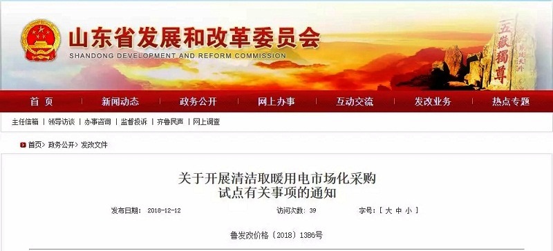 委托國網山東省電力公司代理相關用戶采購市場低價電量,并予以優先購電保障。“清潔取暖用電市場化采購”項目采暖季期間,全電量暫按現行目錄電價每千瓦時降低2.8分錢(含稅)執行,后期根據市場化實際采購情況多退少補,最終實際執行電價不高于用戶現行目錄電價。
