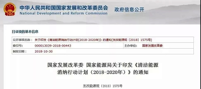 近日,國家發展改革委、國家能源局近日印發《清潔能源消納行動計劃(2018-2020年)》(以下簡稱“計劃”),2018 年,清潔能源消納取得顯著成效;到 2020 年,基本解決清潔能源消納問題!队媱潯愤在第六項內容中明確指出,2019 年、2021年實現北方地區清潔取暖率達到 50%、70%。